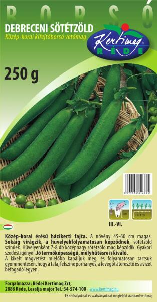 Kifejtõborsó 'Debreceni sötétzöld' 500 g A növény 45-55 cm magas. Sötétzöld színű hüvelyei hajlottak, 7-8 cm hosszúak, folyamatosan képzõdnek. A magvak színe sötétzöld. Hüvelyenként 7-8 db mag képzõdik, mérete 9-10 mm 500 gA vetõmagok elültetéséhez elõször is alaposan lazítsuk fel az üres ágyások talaját, hogy a gyökerek könnyen fejlõdhessenek. Adjunk hozzá