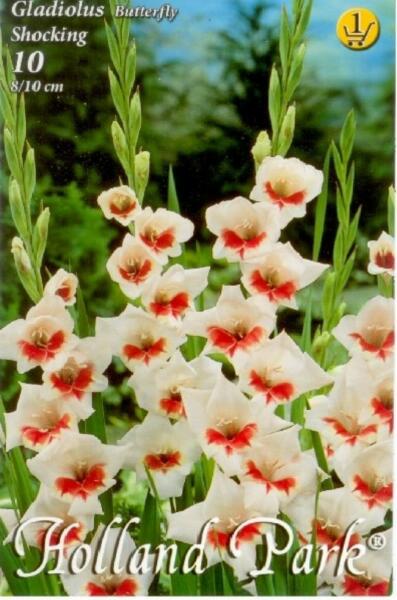 Gladiolus Butterfly Shocking kardvirág virághagymák Javasolt ültetési ideje: III. -V. Virágzás ideje: VII. -IX. Javasolt ültetési távolság: 10 cm Javasolt ültetési mélység kb. : 10 cm Növény várható magassága kb. : 60 cm Termesztett állományból származó növény. Származási hely: EU70 cm-es virágszárával és 40 cm-es virágfüzérével kiváló vágott virág. A fagyv