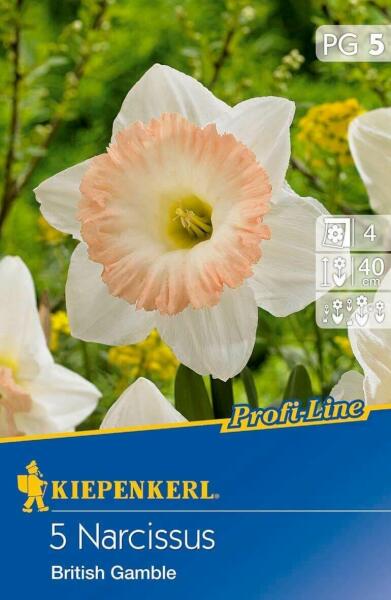 Narcissus British Gamble trombitavirágú nárcisz virághagymák Virághagyma körmérete: 12/14 cm Növény várható magassága: 45 cm Javasolt ültetési ideje: szeptember-december Virágzás ideje: április Vágott virágnak is alkalmas A trombitavirágú nárciszok a nárciszok egyik legismertebb és legkedveltebb változatai. Ezek a virágok hosszú, trombita alakú koronájukról kapták n