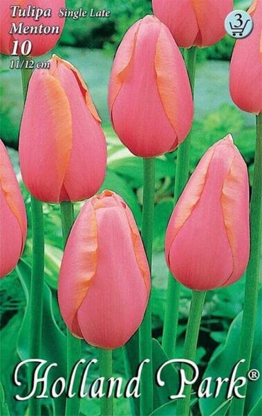 Tulipa Single Late Menton késõi, egyszerű tulipán virághagymák Virághagyma körmérete: 11/12 cm Javasolt ültetési ideje: IX-XII. Virágzás ideje: IV. -V. Javasolt ültetési távolság kb. : 10 cm Javasolt ültetési mélység kb. : 10 cm Növény várható magassága kb. : 55 cm A késõi, egyszerű tulipánok 50-60 cm szárhosszúságú, különösen szép színű tulipánok, amelyek