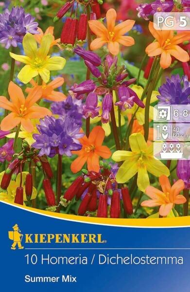 Homeria/Dichelostemma Summer Mix virághagyma összeállítás Csomag tartalma: 10 db Homeria/Dichelostemma virághagyma Növények várható magassága: 40-60 cm Javasolt ültetési ideje: tavasz Virágzás ideje: 6-8