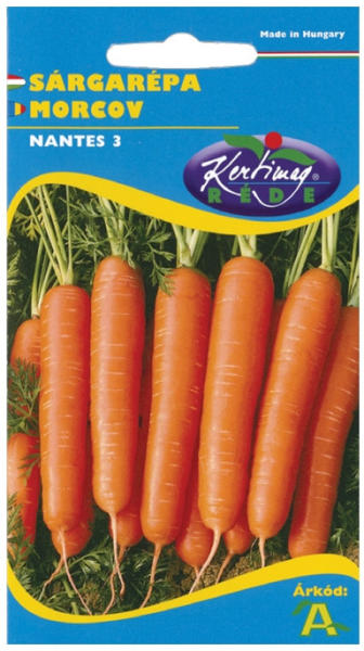 Nantes 3 sárgarépa 5 g Hengeres, sötétnarancs színű. Korai- és másodvetésre alkalmas kiváló Nanti szelekció. Répája hengeres, tompa végű, mind a külső-, mind a belső színe egyöntetűen narancs- piros színű. Főként friss fogyasztásra, később vetve tárolásra is alkalmas. Mélyrétegű, közép kötött, mészben gazdag talajt igényel. Száraz, kemény talajban a répat
