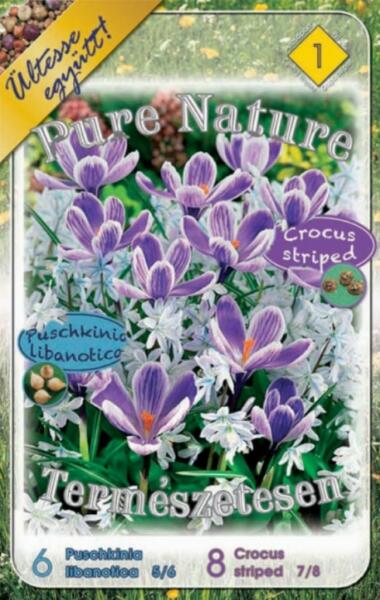 Pure Nature Puschkinia libanotica + Crocus striped virághagyma összeállítás Csomag tartalma: 6 db Puschkinia libanotica 5/6 cm-es puskinvirág virághagyma 8 db Crocus striped 7/8 cm-es krókusz virághagyma Növények várható magassága: 15 cm Javasolt ültetési ideje: szeptember-december Javasolt ültetési távolság: 8 cm Javasolt ültetési mélység: 8 cm Virágzás ideje: február-m