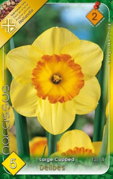 Narcissus Large Cupped Delibes nárcisz virághagymák Virághagyma körmérete: 12/14 cm Javasolt ültetési ideje: Szeptember - December Virágzás ideje: Március - Április Javasolt ültetési távolság kb. : 10 cm Javasolt ültetési mélység kb. : 10 cm Növény várható magassága kb. : 40 cm A nárciszok szinte minden talajon jól fejlõdnek. Szeptembertõl decemberig ültethetõk. Legs