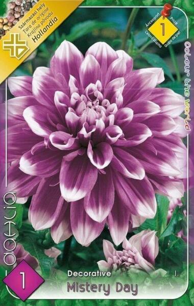 Mistery Day dekoratív dália Javasolt ültetési ideje: III. -V. Virágzás ideje: VII. -X. Javasolt ültetési távolság: 60 cm Javasolt ültetési mélység kb. : 8 cm Növény várható magassága kb. : 110 cm Termesztett állományból származó növény. Származási hely: EU Kiültetés elõtt a gumókat - megjelölve, hogy melyik-melyik - virágzás segítõként és hajtásdugványozás