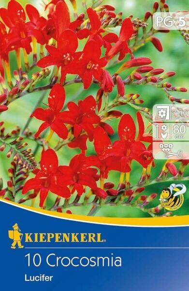 Crocosmia Lucifer sáfrányfű virághagymák Virághagyma körmérete: 80/10 cm Javasolt ültetési ideje: tavasz Növény várható magassága: 80 cm Virágzás ideje: 7-10 hó Balkonládába is ültethetõ