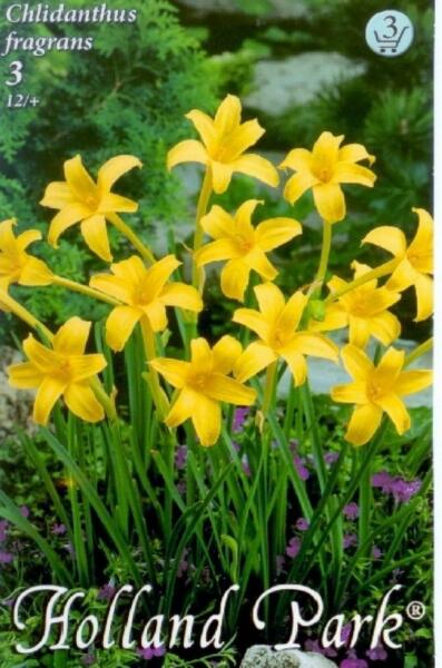 Chlidanthus fragrans Illatos sástölcsér virághagymák 3' Virághagyma körmérete: 12/+ cm Javasolt ültetési ideje: Fagyok után Virágzás ideje: VIII. -IX Javasolt ültetési távolság kb. : 8 cm Javasolt ültetési mélység kb. : 3 cm Növény várható magassága kb. : 25 cm A chlidanthus illatos sástölcsér. A pompás, illatos virágok levéltelen, 20 cm-es száron nyílnak. Auguszt