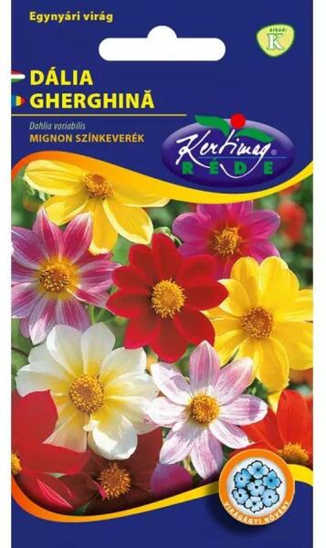 DÁLIA EGYSZERŰVIRÁGÚ SZÍNKEVERÉK (DAHLIA PINNATA) Egynyári virágágyak díszítésére az alacsony mignon és a valamivel magasabb féltelt virágú fajták alkalmasak, melyek magvetéssel is jól szaporíthatók. Márciusban fűthető fólia alá vagy langyos ágyba vetjük. Fagyérzékeny, ezért állandó helyére csak május második felében kerülhet. Gumós töveit ősszel felszedve