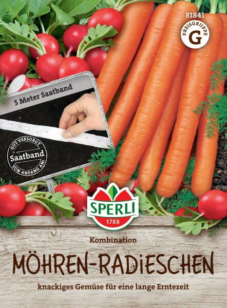 Lange rote stumpfe o. H. + Sora Sárgarépa-retek vetõmagszalag (5 m) vetõmag A sárgarépa és a retek kombinációjával hosszú idõn át friss zöldségekhez juthatunk. Helyezzük a magszalagot kb. 1-1,5 cm-es barázdákba, enyhén fedjük földdel, nyomkodjuk le, és egyenletesen öntözzük meg. Laza, humuszban gazdag talajt igényel. Rovarháló-takarással megvédhetõ a sárgarépalégy