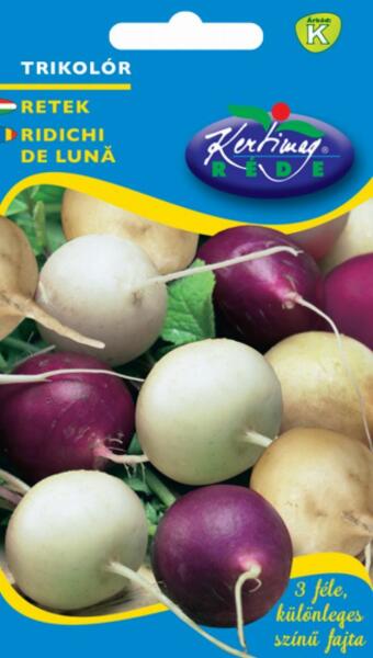 Rédei kertimag Retek trikolór vetõmag A'Három különbözõ színű, gömbölyű hónapos retek, tavaszi és õszi termesztésre. Az Albena fehér, a Zlata sárgásbarna és a Viola lila színű gumót fejleszt. Pudvásodásra, repedésre nem hajlamos fajták. Vetési idõ: április, május, július, augusztus, szeptember Szedés vagy virágzás ideje: július, június, szeptember, október So