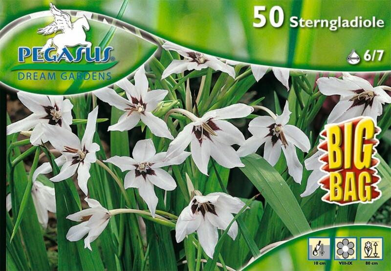 Pegasus Gladiolus callianthus kardvirág virághagymák BIG BAG Virághagyma körmérete: 6/7 cm Javasolt ültetési ideje: tavasz Növény várható magassága: 50 cm Virágzás ideje: 8-9 hó Vágott virágnak is alkalmas