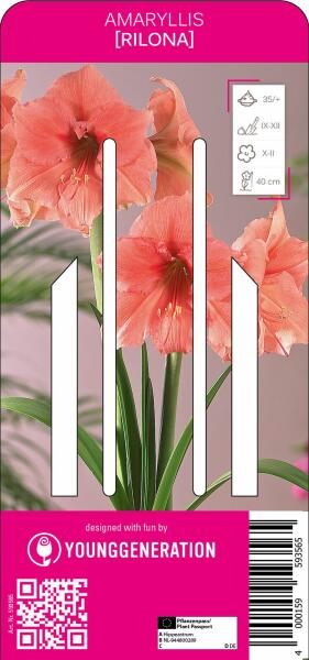 Amaryllis Rilona virághagyma (lazac) Hagyma körmérete: 35/+ cm Javasolt ültetési ideje: tavasz Növény várható magassága: 40 cm Virágzás ideje: Október-Február Amaryllis 'Rilona' bizonyítja, hogy az amarilliszok nemcsak vörös virágokkal nyújtanak fantasztikus látványt. A dísznövény decembertõl februárig hoz csodálatos lazac színű virágokat, amelyeket fodros szélekkel