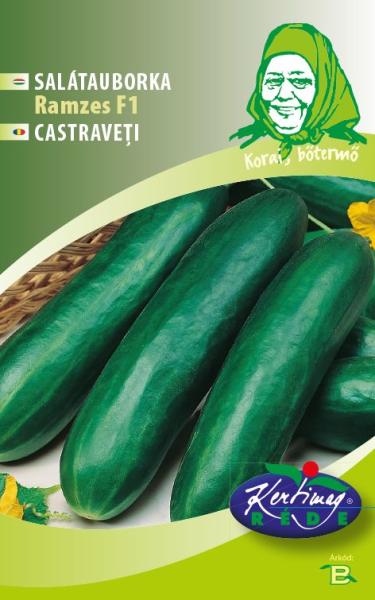 Rédei kertimag Ramzes F1 salátauborka vetõmag B' NK sor. Korai, partenokarp (beporzást nem igénylõ), bõtermõ salátauborka. Termése hengeres, 18-20 cm hosszú, sötétzöld színű. Felületén gyéren elosztott fehér tüskék találhatók. Melegágyban is termeszthetõ. Vetési idõ: május-június Termés vagy virág színe: sötétzöld Szedés vagy virágzás ideje: július, augusztu