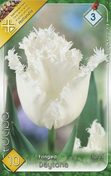Tulipa Fringed Daytona Honeymoon tulipán virághagymák Virághagyma körmérete: 10/11 cm Javasolt ültetési ideje: IX. -XII. Virágzás ideje: IV. -V. Javasolt ültetési távolság: kb. : 10 cm Javasolt ültetési mélység kb. : 10 cm Növény várható magassága kb. : 50 cm A Crispa tulipánok 50 cm szárhosszúságú különösen szép színű tulipánok, amelyek igen hosszan virágoznak.