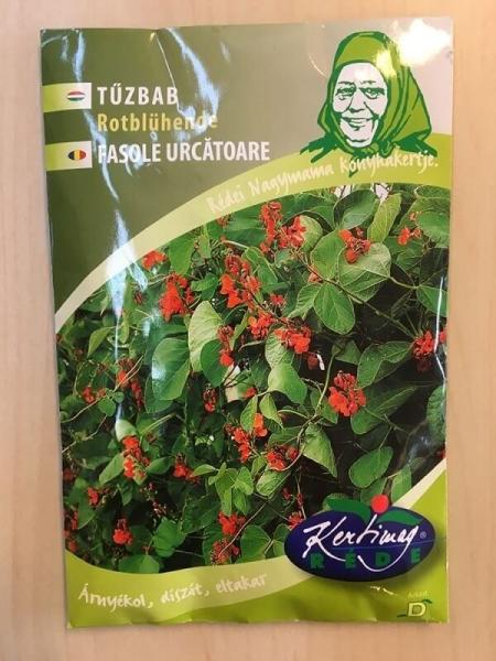 Rédei kertimag Tűzbab 'Rotblühende' vetõmagErõteljes növekedésű, 2,5-3 m magasan felfuthat. Élénk színű, piros virágai késõ õszig nyílnak. Helyezhetjük sarokba, ahol jól kitölti a teret, vagy használhatjuk válaszfalként, árnyékolóként. Kifejtve étkezési célra is alkalmas. Napsütötte helyet, állandó nedvességet igényel. Vetési idõ: április Növény magassága: