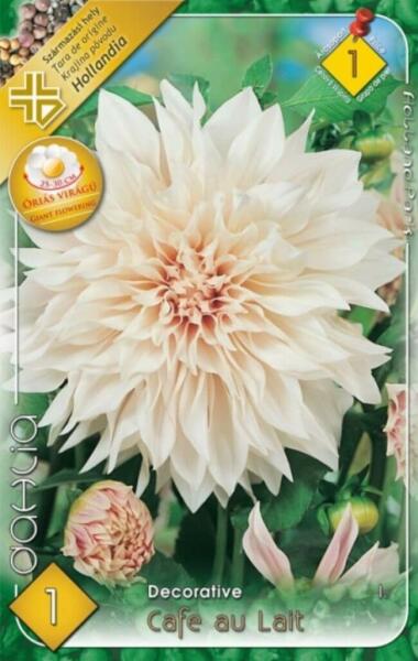 Dahlia Decorative Cafe au Lait dekoratív dália gumó 1' Javasolt ültetési ideje: III. -V. Virágzás ideje: VII. -X. Javasolt ültetési távolság: 60 cm Javasolt ültetési mélység kb. : 8 cm Növény várható magassága kb. : 110 cm Termesztett állományból származó növény. Származási hely: EU Kiültetés elõtt a gumókat - megjelölve, hogy melyik-melyik - virágzás segítõk