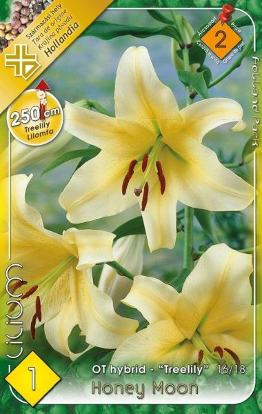 Honey Moon liliomfa Javasolt ültetési ideje: III. -V. vagy IX. -XII. Virágzás ideje: VI. -VIII. Javasolt ültetési távolság: 20 cm Javasolt ültetési mélység kb. : 15 cm Növény várható magassága kb. : 250 cm Termesztett állományból származó növény. Származási hely: EU Védett helyre ültetve jól viseli a tél viszontagságait, csak az igazán kemény telek tehetnek benne k
