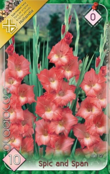 Gladiolus Spic and Span kardvirág virághagymák 0' Javasolt ültetési ideje: III. -V. Virágzás ideje: VII. -IX. Javasolt ültetési távolság: 10 cm Javasolt ültetési mélység kb. : 10 cm Növény várható magassága kb. : 90 cm Termesztett állományból származó növény. Származási hely: EUSzára nem ágazik el, hosszan barázdált levelet növeszt. Erõs száron lévõ virágai t