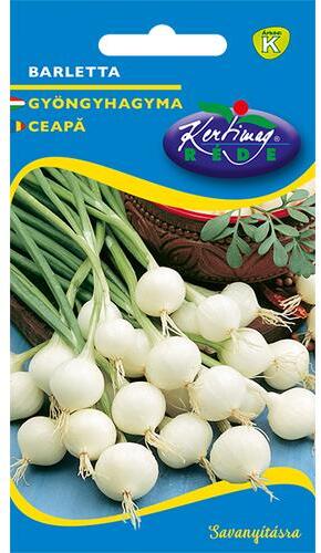 Közepes tenyészidejű (70 nap), fehér héjszínű gyöngyhagyma. Sűrűbben és mélyebbre vetjük, mint a hagyományos vöröshagymát, hogy szép fehér maradjon. Nyers fogyasztásra, savanyításra alkalmas.