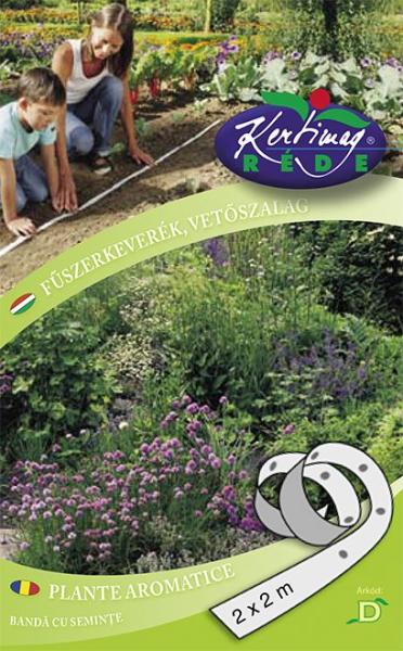 Rédei kertimag Fűszerkeverék vetõszalag 2x2 méter D'Vetõszalag használatával elkerüljük a ritkítás fáradtságos munkálatát, így gyors és egyszerű a vetés. Fajtajellemzõk: a tasak 2 m egynyári és 2 m évelõ fűszerkeveréket tartalmaz. A négy évelõ fűszernövénybõl álló keverék (citromfű, oregano, kakukkfű, metélõhagyma) fűszerkertünk alapjául szolgál. A köv