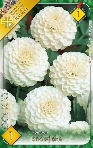 Dahlia Pompon Snowflake pompon dália gumó 1' Javasolt ültetési ideje: III. -V. Virágzás ideje: VII. -X. Javasolt ültetési távolság: 60 cm Javasolt ültetési mélység kb. : 8 cm Növény várható magassága kb. : 70-80 cm Termesztett állományból származó növény. Származási hely: EU Kiültetés elõtt a gumókat - megjelölve, hogy melyik-melyik - virágzás segítõként és h