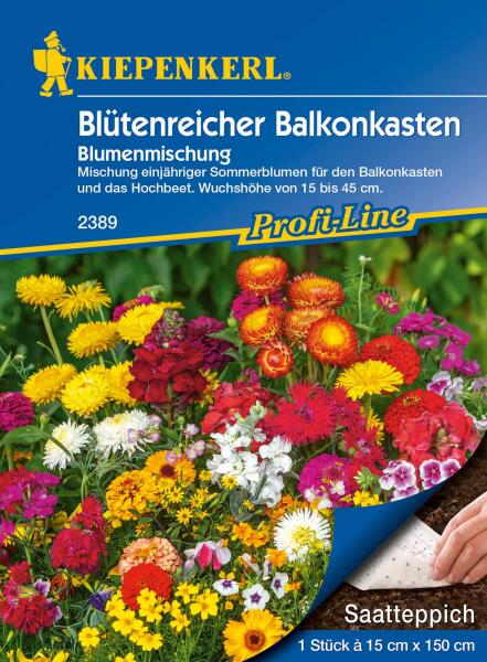 Kiepenkerl Balkonkastenblumen balkonláda-magaságyás virágai vetõmagszõnyeg 2389 Vetésidõ: szabadföld ápr-máj. Vetésmélység: 0,5 - 1 cm Tõtávolság: szórva vetés Csírázás: 14-20 nap 15-25°C-on Növény várható magassága: 15 - 45 cm Virágzás ideje: VI - X. Alkalmas vágott virágnak: igen Tarka nyári virágok összeállítása balkonládába. Egész nyáron mindig más é