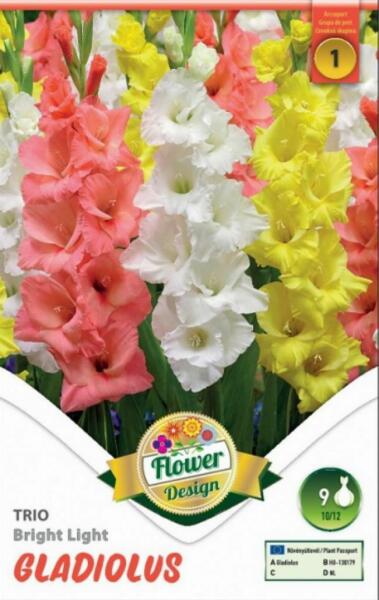 Gladiolus Trio Bright Light kardvirág virághagymák 1' Javasolt ültetési ideje: III. -V. Virágzás ideje: VII. -IX. Javasolt ültetési távolság: 10 cm Javasolt ültetési mélység kb. : 10 cm Növény várható magassága kb. : 90 cm Termesztett állományból származó növény. Származási hely: EUSzára nem ágazik el, hosszan barázdált levelet növeszt. Erõs száron lévõ virág