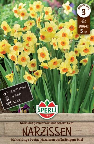 Poetaz-Narzisse Scarlet Gem nárcisz virághagyma Virághagyma körmérete: 12/14 cm Növény várható magassága: 20-40 cm Javasolt ültetési ideje: szeptember-december Virágzás ideje: március-április Vágott virágnak is alkalmas Az õszi virághagymák ültetése nagyszerű módja annak, hogy tavaszra gyönyörű, színes kertet varázsoljunk. Ezek a hagymák a hideg téli hónapok alatt