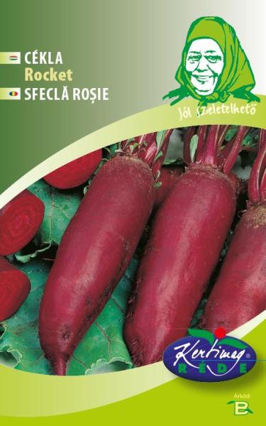 Rédei kertimag Rocket cékla vetõmag B' NK sor. Kiváló minõségű, bõtermõ, jó ízű fajta. A gumó hengeres, középnagy méretű ( 15 cm hosszú), külsõ héja fényes, sötétvörös. Húsa egyszínű vörös, finomszerkezetű, jól szeletelhetõ. Vetési idõ: május-június Termés vagy virág színe: sötétvörös Szedés vagy virágzás ideje: augusztus, szeptember Sortávolság: