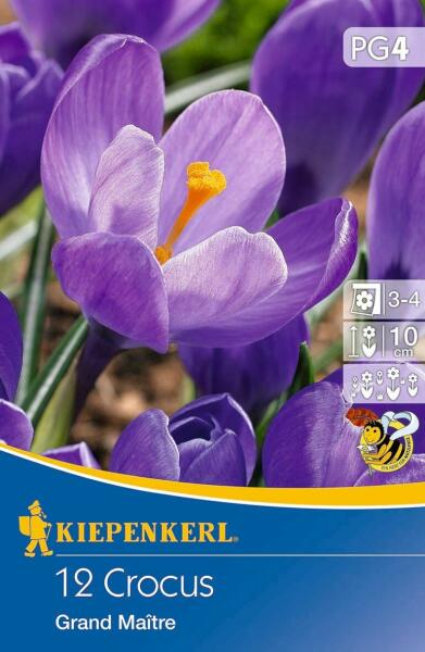 Crocus vernus Grand Maitre nagyvirágú krókusz virághagymák Virághagyma körmérete: 9/10 cm Növény várható magassága: 10 cm Javasolt ültetési ideje: szeptember-december Virágzás ideje: március-április Balkonládába is ültethetõ A 'Grand Maitre' krókusz (Crocus vernus 'Grand Maitre') egy lenyűgözõ nagyvirágú tavaszi hagymás növény, amely különösen szép kék-lila vir