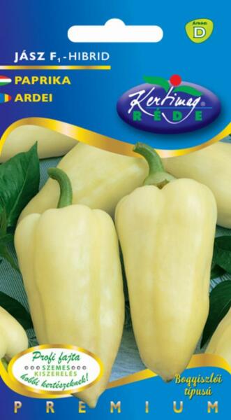 Rédei kertimag Jász F1 paprika vetõmag D'Folytonnövõ, csüngõ, enyhén csípõs. Bogyiszlói fajtához hasonló, de termése nagyobb, egyöntetűbb. Vetési idõ: március Palántázás ideje: május Életcikus: egynyári Termés vagy virág színe: sárga Növény magassága: 70 cm Tenyészidõ: korai Szedés vagy virágzás ideje: július, augusztus, szeptember Sortávolság: 70 cm Tõtáv