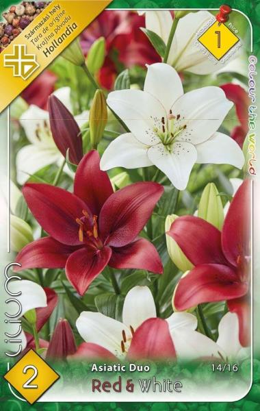 Piros és fehér liliomok Javasolt ültetési ideje: III. -V. vagy IX. -XII. Virágzás ideje: VI. -VIII. Javasolt ültetési távolság: 20 cm Javasolt ültetési mélység kb. : 15 cm Növény várható magassága kb. : 100 cm Termesztett állományból származó növény. Származási hely: EU A liliom nyáron virágzó, egzotikus növény. Pompás dísze a kerteknek, alkalmas díszcserjék k