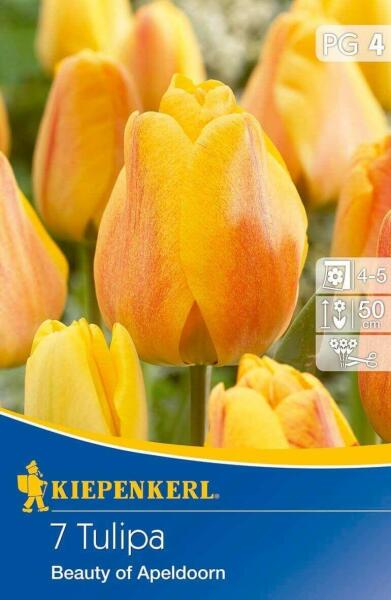 Tulipa Beauty of Apeldoorn Darwin-hibrid tulipán virághagymák Virághagyma körmérete: 12/+ cm Növény várható magassága: 50 cm Javasolt ültetési ideje: szeptember-december Virágzás ideje: április-május Vágott virágnak is alkalmas A Darwin-hibrid tulipánok a tavaszi kertek impozáns és lenyűgözõ virágai, amelyek nagy méretükkel és élénk színeikkel vonzzák a tekintetet.