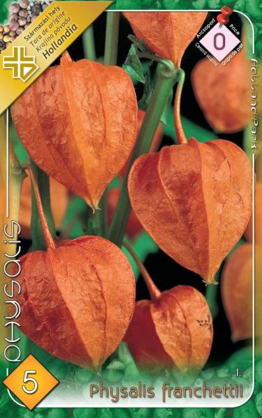 Lampionvirág Javasolt ültetési ideje: III. -V. Virágzás ideje: VII. -IX. Javasolt ültetési távolság: 25 cm Javasolt ültetési mélység kb. : 6 cm Növény várható magassága kb. : 60 cm Termesztett állományból származó növény. Származási hely: EU A lampionvirág elnevezést a termését körülvevõ papír állagú narancsos színű lampion formájú díszérõl kapta. Ez a d