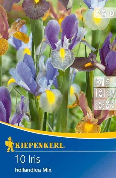 Iris hollandica Mix vegyes írisz virághagymák Virághagyma körmérete: 7/8 cm Növény várható magassága: 40 cm Javasolt ültetési ideje: szeptember-december Virágzás ideje: június-július Vágott virágnak is alkalmas A holland íriszek (Irix x hollandica) hosszú virágzati száraikon megjelenõ nagyméretű virágok a júniusi kertek egyedi megjelenésű hagymás növényei. A virág
