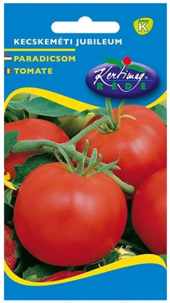 Kecskeméti paradicsom mag 0.5 g Befőznivaló, jó ízű. Erős növekedésű determinált, középérésű fajta, szabadföldi termesztésre. Szára erős, szilárd, erőteljes lombozatú. Bogyója nagy, lapított gömb alakú, 110-120 g tömegű, lédús. Befőzésre javasolt, jó ízű paradicsom. Igen korai fajta. Determinált növekedésű, igen korai érésű hibrid. Fűtetlen fólia alatti
