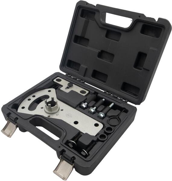 Ez a Ford motorvezérlő készlet kifejezetten a Ford 1.5L 3 hengeres EcoBoost motorok időzítési alkatrészeinek pontos beállítására és rögzítésére készült. Nélkülözhetetlen eszköz az időzítő szíj vagy lánc cseréjéhez, amely biztosítja, hogy a vezérműtengely és a főtengely stabilan a helyükön maradjanak a motor karbantartása során, elkerülve az esetleges hibás b