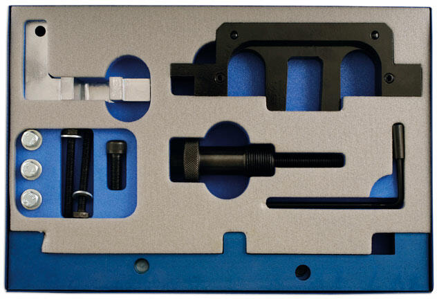 Laser Tools - Made in the UK Vezérlésrögzítő készlet, láncos, benzines motorokhoz Rögzíti a motor vezérműtengelyét miközben leszereli vagy kicseréli a láncot. A készletben megtalálható a VANOS - a változtatható szelepvezérlő egység megfelelő helyzetben történő rögzítésére használható szerszám Motor tipusok szerint: BMW N40, N45, N45T láncos, benzines 1,6 literes