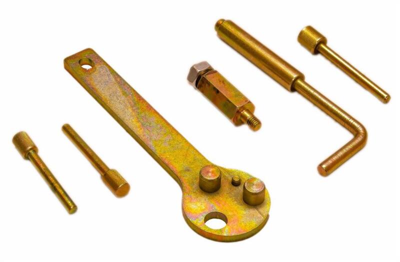 Leírás A felszerelés tartalmaz egy kulcsot a főtengely elfordításához és a vezérműtengely kerekeinek reteszeléséhez szükséges csapokat. A kulcs lehetővé teszi a főtengely zökkenőmentes és szabályozott forgását az időzítés beállításakor, így biztosítva a pontos pozicionálást. A csapok a vezérműtengely kerekeinek biztonságos rögzítésére szolgálnak, megakadál