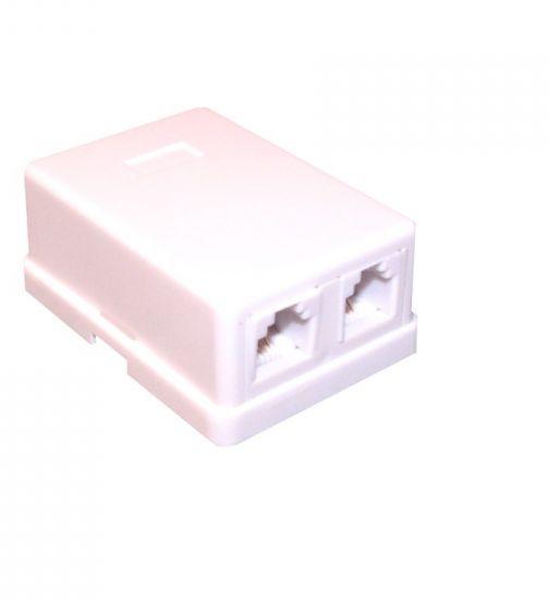 Telefon fali aljzat, 6P4C Dupla. Jellemzők: - Színe: Fehér - Egy telefonvonal párhuzamosított bekötésére - Rögzítés: K étoldalú ragasztóval, Csavarral ( Mindkettő tartozék ) - Falon kívüli kivitel