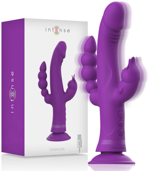 INTENZÍV - CASANOVA VIBRÁTOR NYÚLVIBRÁTOR SZILIKON SZILIKON HÁRMAS MOTOR LILA Megosztásra tervezték, csak a képzelet szab határt!Egyetlen szilikontestben egyesített, zseniális vibrátorok. 3 ultra csendes és erőteljes, egymástól független motor. 30 vibrációs mód, 3 könnyen kezelhető műveletből vezérelhető. Extra erős tapadókorongjával bármilyen felületre rögzítheted