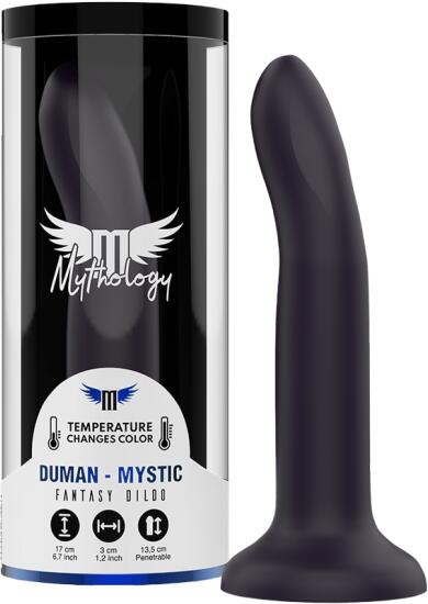 A MYTHOLOGY Duman Mystic Dildo M prémium szilikonból készült, amely hő hatására "űrliláról" "neonrózsaszínre" változtatja a színét. 20 cm hosszú és 2,5 cm átmérőjű, csak a legmerészebbeknek készült. Ez a vibrátor nemcsak dizájnjával tűnik ki, hanem rendkívül funkcionális is. A Duman Mystic szuper erős rezgésekkel van felszerelve, és mágneses USB-töltővel tölth