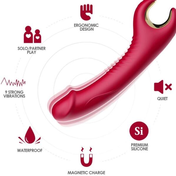 Egyenes, sima nyéllel és nagyon ívelt heggyel, amely precízen stimulál. A hegy lekerekített és kissé szélesebb, mint a szár, ovális alakú. Mivel teljesen merev, még jobban fókuszálható a stimuláció, és jobban ellenőrizhető a behatolás. Lehetővé teszi, hogy rezgéseinek köszönhetően pontos, lágy és erőteljes érzést élvezhess, összesen 7 rezgésmintával. ABS-ből