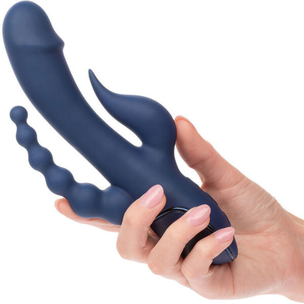 CALEXOTICS - VIBRÁTOR HÁRMAS ORGAZMUS KÉK Élvezd ki legvadabb fantáziáidat a gonoszul erős III Triple Orgasmával. Tapasztalja meg a soha nem látott élvezetet az erőteljes, újratölthető, háromszoros akciójú masszírozóval, rezgő szárral, gyöngyös farokkal és kontúros stimulátorral. Az erőteljes hármas behatolású masszírozó 3 rezgési sebességet használ az érzékien