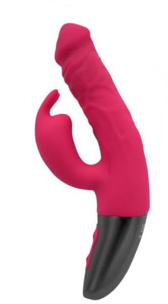 Termék részletekKiváló minőségű szilikonból készített, bordázott felületű, pénisz formájú, a fejében 10 rezgési és 10 forgó funkcióval rendelkező, a g-pont stimulálására is használható, 10 vibrátoros funkcióval ellátott csiklóizgatóval kiegészített, fém fogóval felszerelt vibrátor, LED-es kezelőgombokkal. Tisztítása: minden használat előtt és minden használat után langyo