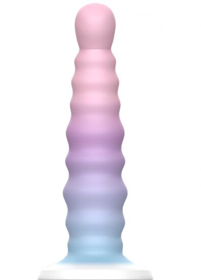 A pasztell rózsaszín-lila vibrátor gyönyörűen csillog a fényben, és a kiemelkedő bordáknak köszönhetően tökéletesen masszírozza a hüvelyt és a fenekét. A kerek tapadókorong jól tapad bármilyen sima felületen , és szépen illeszkedik a legtöbb hevederhez. A vibrátor puha szilikonból készült, amely könnyen tisztítható és karbantartható. A szilikon anyag a hipoallerg