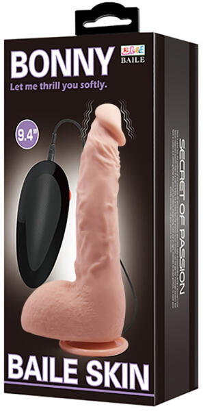 Realisztikusan kialakított, pénisz formájú, testszövethez hasonló, bőrszerű tapintású anyagból készült, állítható rezgési funkcióval rendelkező, vezetékes távirányítóval szabályozható, erezett felületű, herékkel kiegészített, rugalmas vibrátor. Tapadókorongja segítségével sík felületre rögzíthető. Tisztítása : minden használat előtt és minden használa