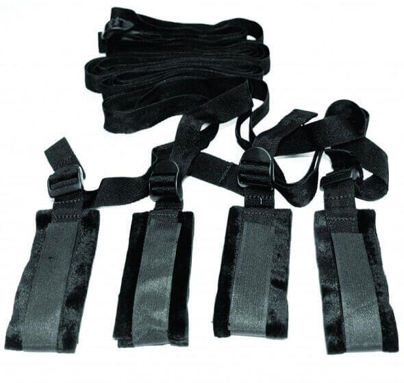 S&M - ágyhoz kötöző bondage szett (fekete) Élj át különleges perceket, élvezd, ahogy kiszolgáltatod magad kedvesednek, vagy Te csinálsz Vele, amit csak akarsz! A szett már önmagában elegendő egy kielégítő, ágyhoz történő kötözéshez és kéjelgéshez. A szett tartalma: 4db tépőzáras bilincs (kezek és a lábak lebilincselésére) 5db egymáshoz kapcsolódó, állíth