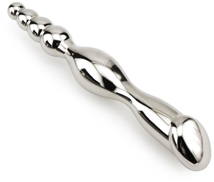 Golyós acél dupla dildó. Rendkívül igényes kidolgozású, rozsda és nikkelmentes acél dupla dildó. Anál és/vagy vaginális izgatására kifejezetten kifejlesztve. Nagyobbik végén átmérő:3,8-4,2cm Kisebbik végén átmérő::1,5-3cm A termék teljes hossza 23cm