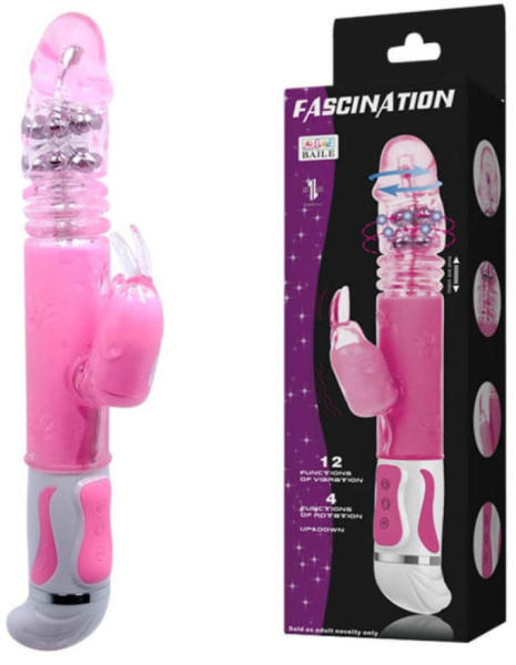 | 14990 | Fascination Bunny Vibrator PinkZselés anyagú, kellemes tapintású multi funkciós gyöngyös vibrátor. A körkörösen forgó fejnek köszönhetően a g-pontot masszírozza, ezzel még nagyobb élvezetet lehet átélni, ezen felül ez a típus még fel-le mozgást is végez ami a behatolást imitálja. A bordázott felületnek köszönhetően a hüvely falát stimulálja, míg a gyö